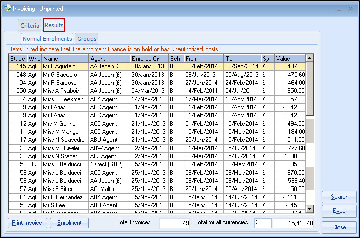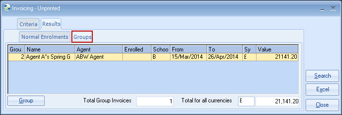 are displayed, and results may be printed if required. Note: Unprinted Group