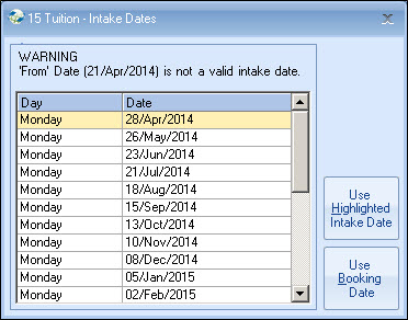 can be selected, or entered dates used by selecting "Use Booking Date":