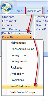 set up and used to validate course dates when entering enrolments. Enter relevant details and select the year (you will need