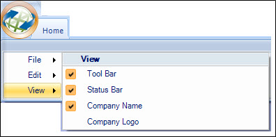 View - Options Any of these options may be displayed: Tool Bar:(buttons for quick entry commonly used routines) Status Bar:(details of database usage) Company Name: Company Logo: