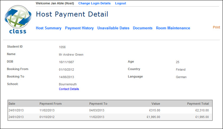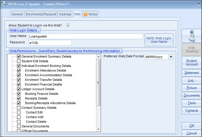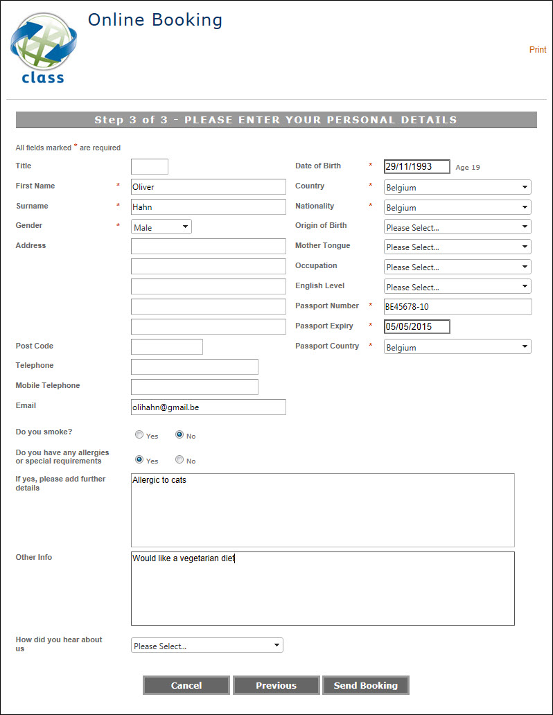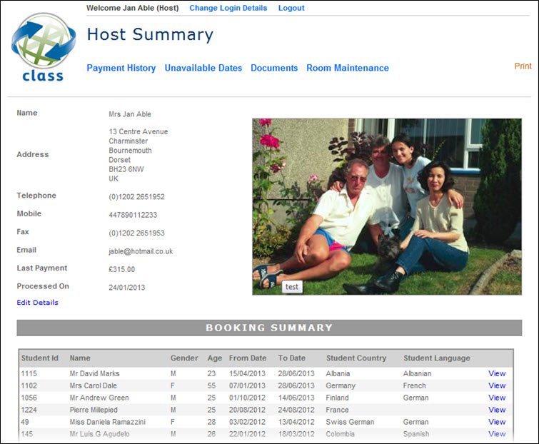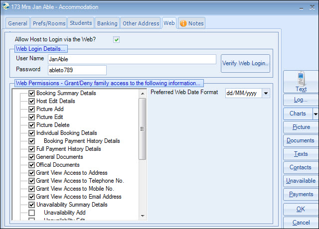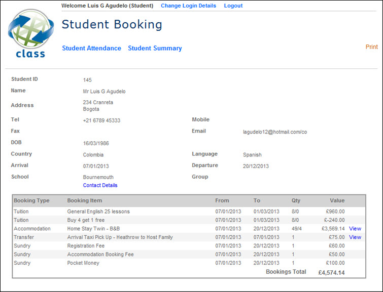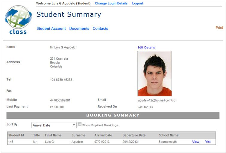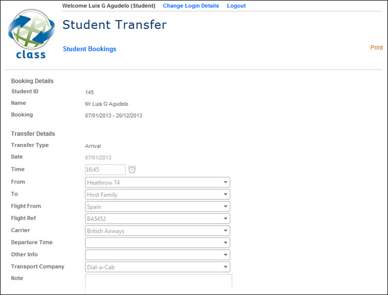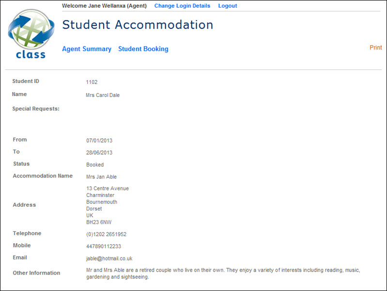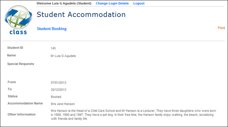 accommodation details (host name/address) 'n' days prior to arrive. This allows the school time to ensure details are committed before allowing them to