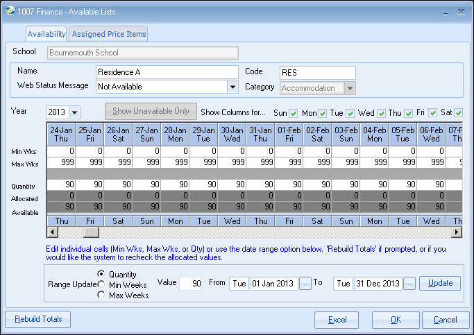 Generate Dates - Dates are automatically created but can be added or deleted by hand to reflect special events e.g. Easter, Christmas etc.