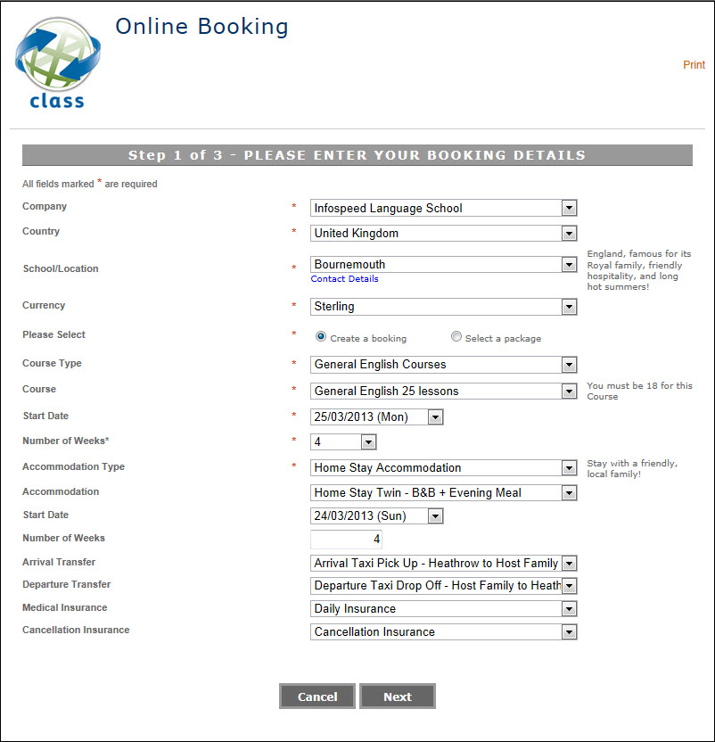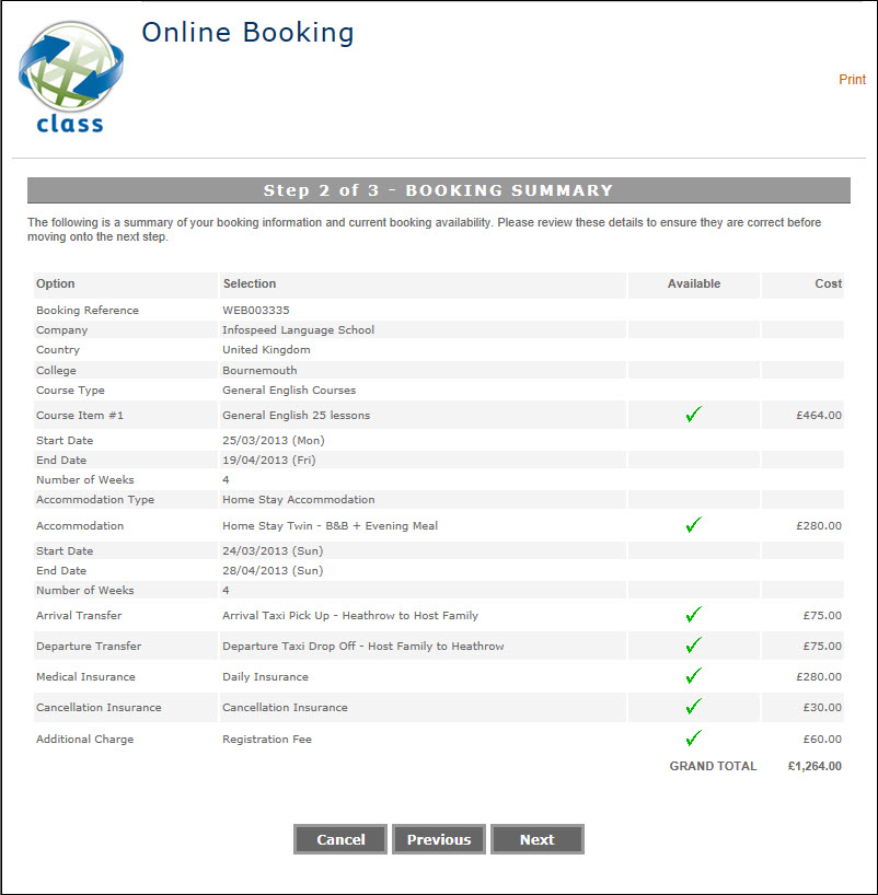 integration is the most advanced form of Web/Systems integration. Class cuts out the "middle man" by allowing the web to directly access and update (with protection) Class, so there is no longer the need for 2 systems to be maintained (Class Online Toolkit and Class) or for online bookings to be re-entered. Of course a web page designed to reflect your corporate image is still required, but the product, pricing and availability content is taken live from Class. For example, the