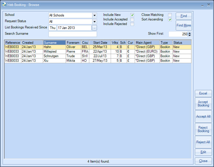 products you sell (courses, accommodation, transfers and sundries), their price,
