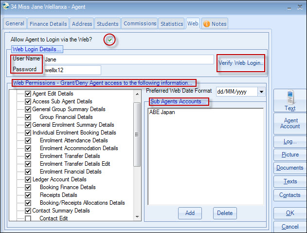 Permission to access the accounts of Sub Agents (set up in the table on the right side)