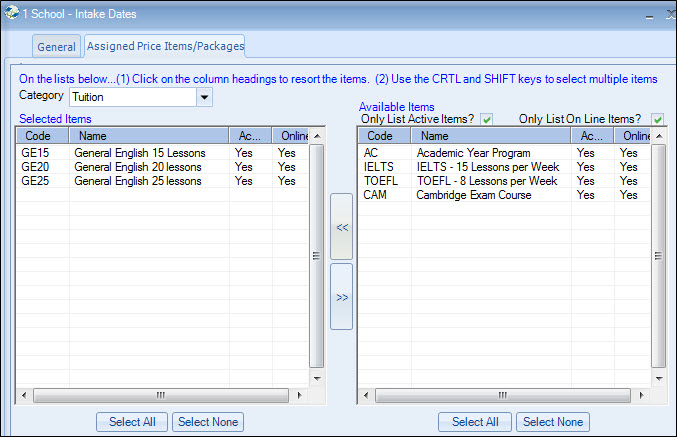 The List is given a Name to represent all the items controlled by the intake dates, typically Tuition Items.