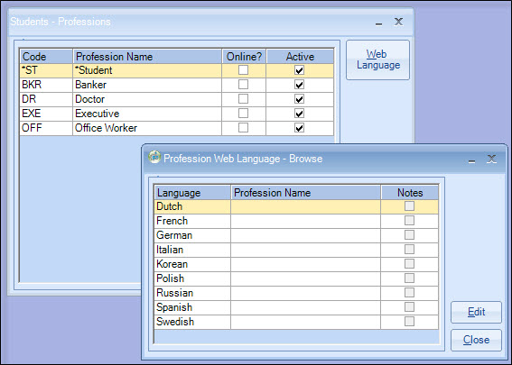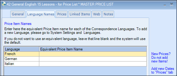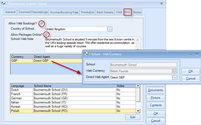 Setting a Web Language allows Schools, Prices, Courses, Sources and Professions, to have an equivalent name in that language. If the Web is only in English, this option is not required.